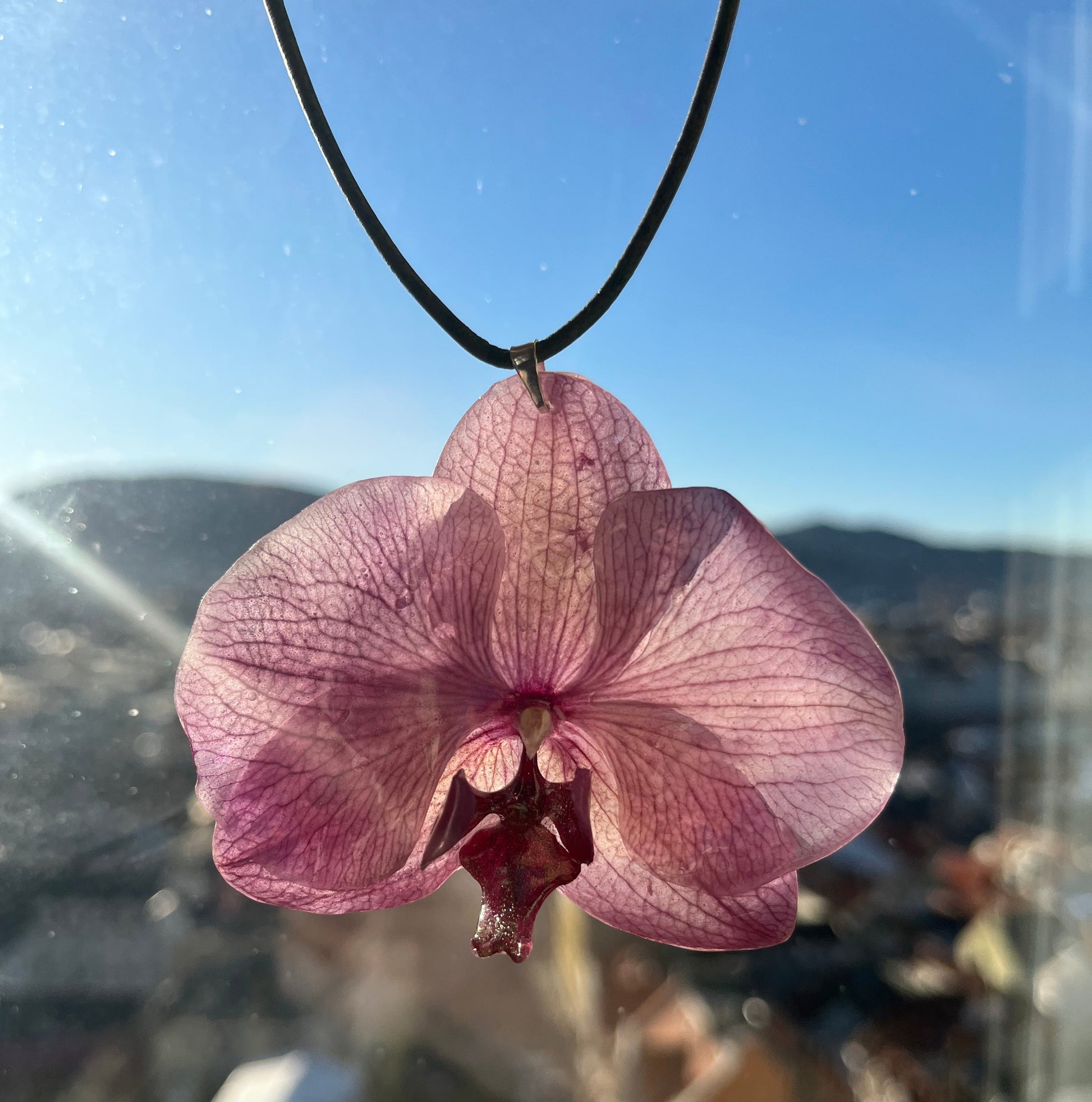 EROTISK ORKIDÉ hårspenne - ekte tørket blomst, sølv
