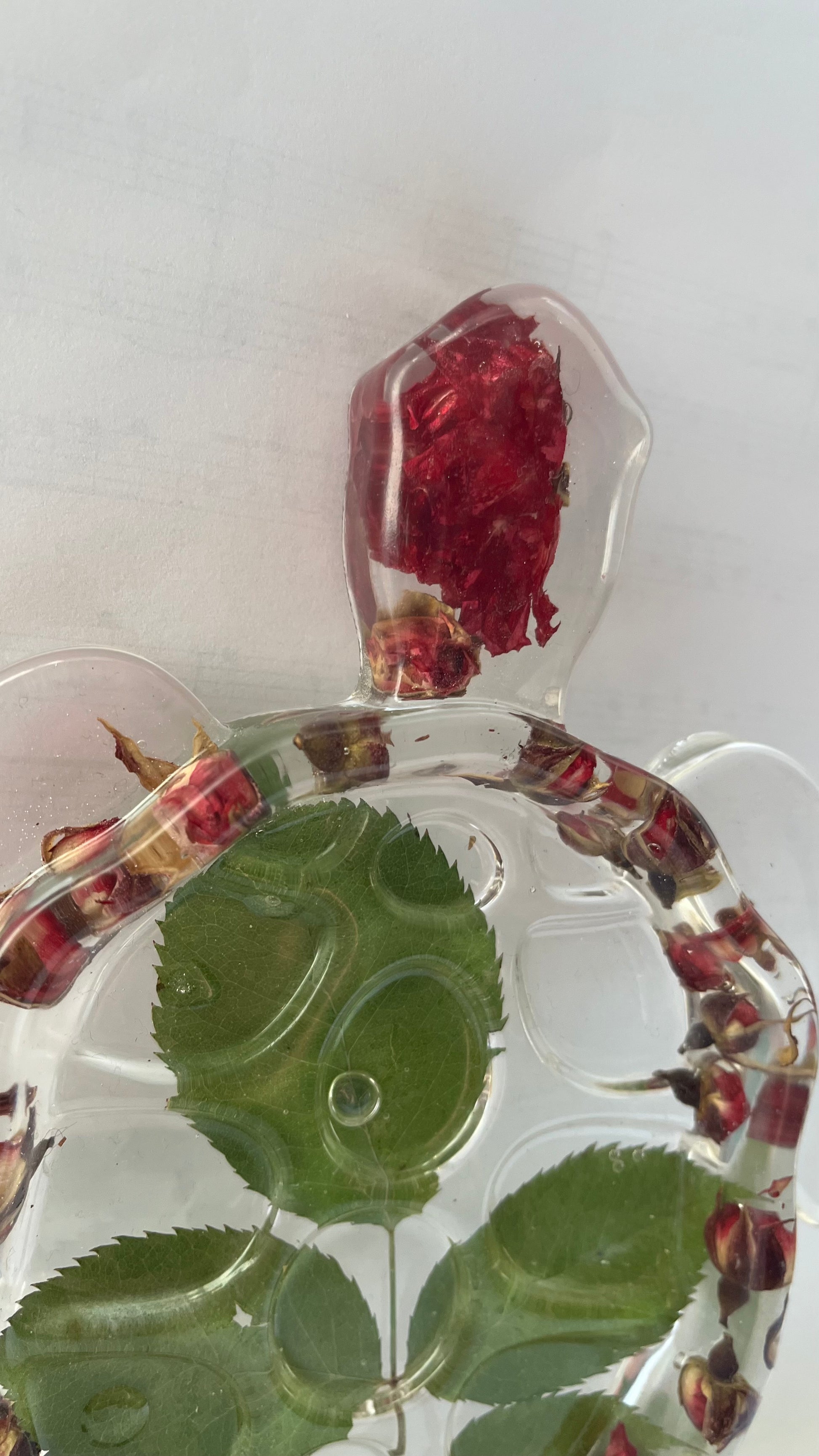 Ekte tørkede roseblader, kunstharpiks, gullfarget folie