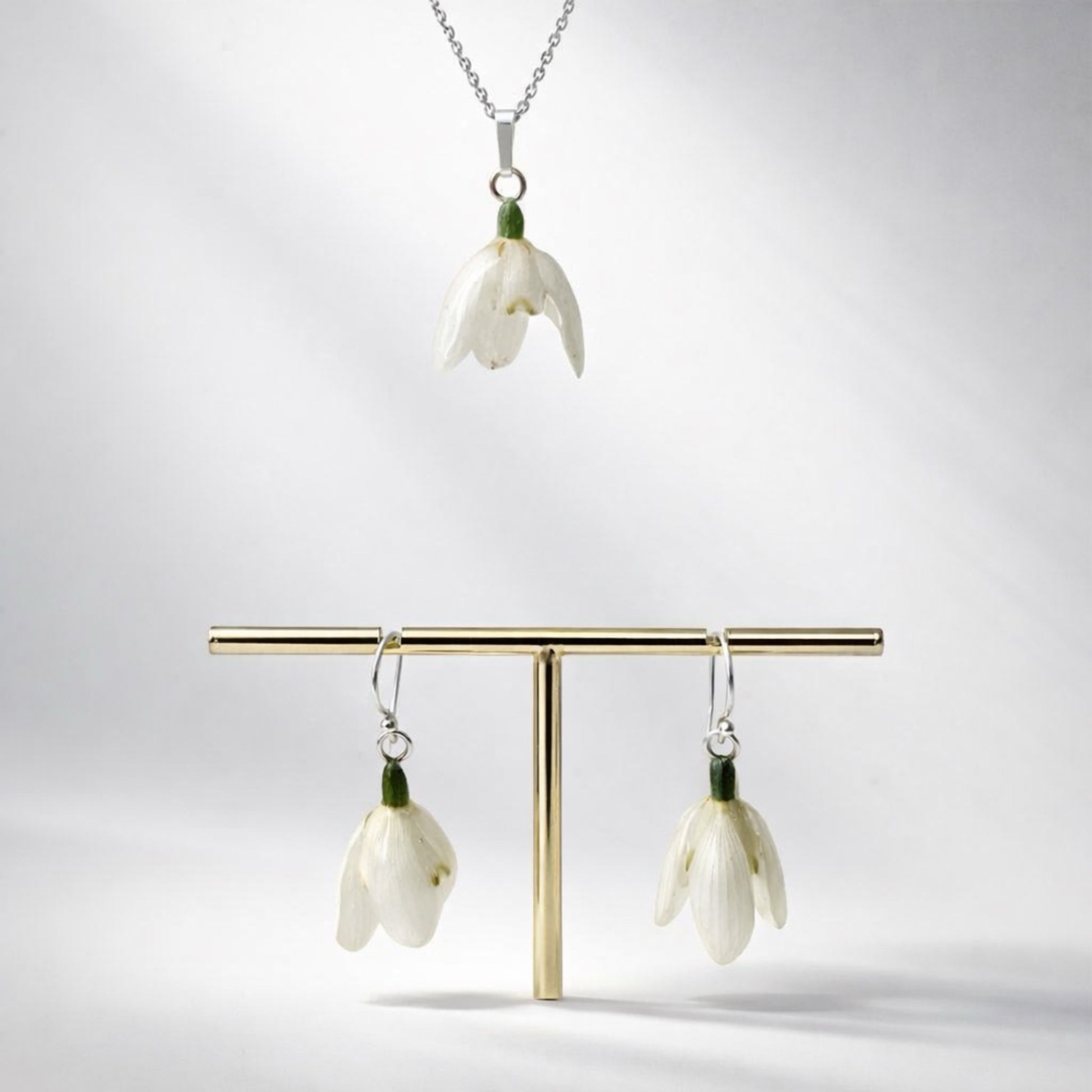 Sneklokken er håndmontert på en delikat lenke i 925 sterling sølv, nikkelfri og allergivennlig. Hver blomst velges og plasseres med omtanke for balanse og helhet, og siden materialet er ekte natur, vil ingen smykker være helt like. Dette er ikke masseproduksjon, men små blomstersmykker som lages én for én, med respekt for både plante og håndverk.